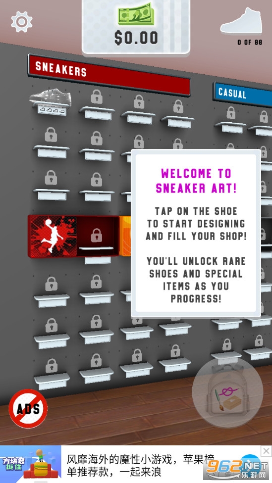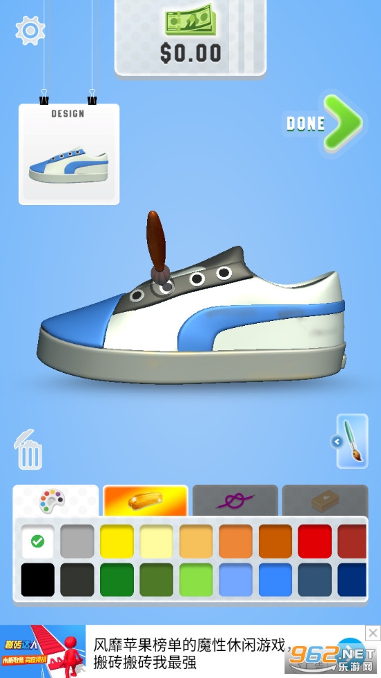非常有趣的一款休闲游戏,玩家在游戏中能够自己对球鞋进行设计,搭配各种你喜欢的颜色和元素,让鞋子变得更加有艺术感!