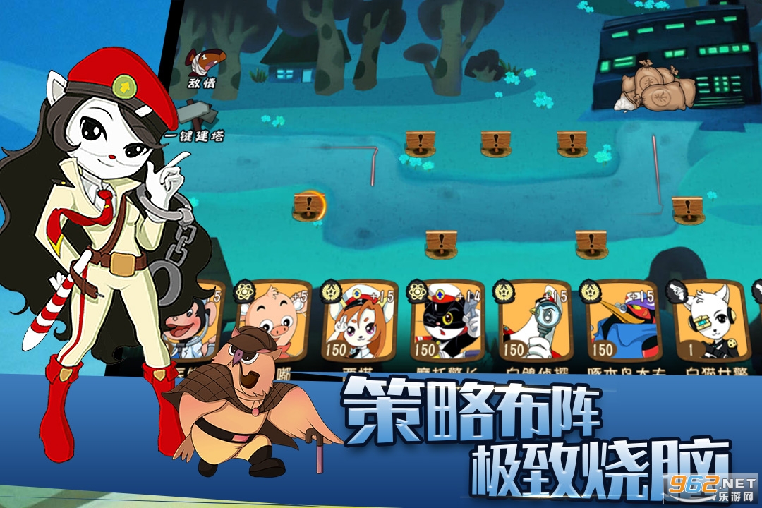 《黑猫警长联盟》是一款以国漫动画改编的Q版游戏,通过塔坊战斗的形式击败入侵者,游戏内充分还原了黑猫警长的人物肖像,将动画剧情生动呈现在游戏中。而在游戏中,你将会以一名实习警长的身份,与闯入森林小填的犯罪分子斗智斗勇,跟其他警员一起保护森林小镇的安全。