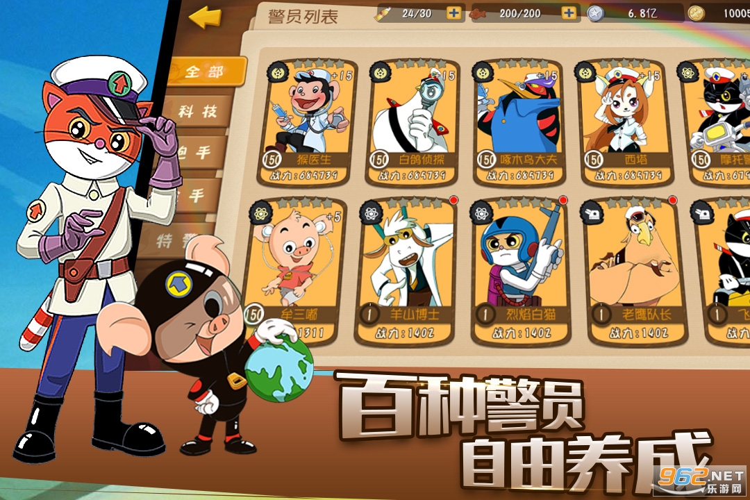 上百种具有不同能力的黑猫警员们等你召集,培养打造最强警队