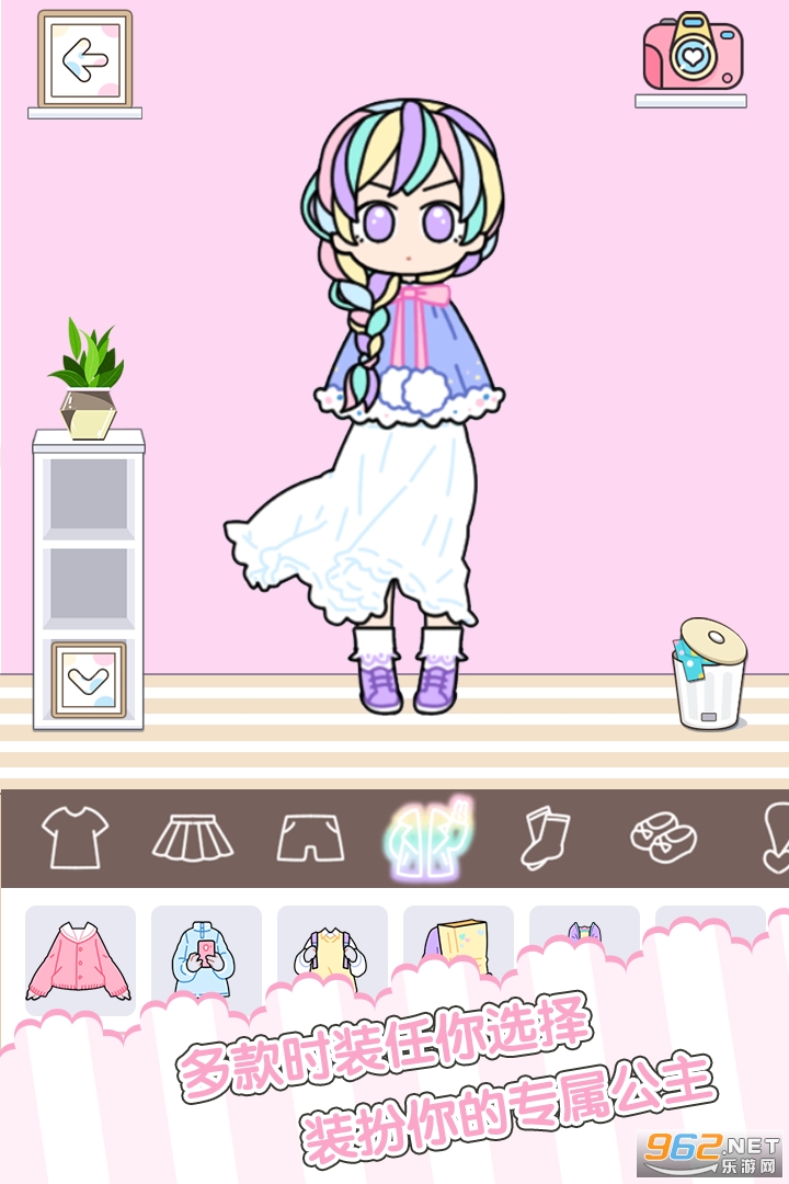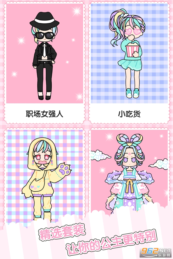 趣味的手机换装小游戏,在这尽情发挥你的创意小宇宙,还可以DIY生成少女心满满的礼服和头饰等等,操作简单,上手容易,喜欢就来962试试吧!
