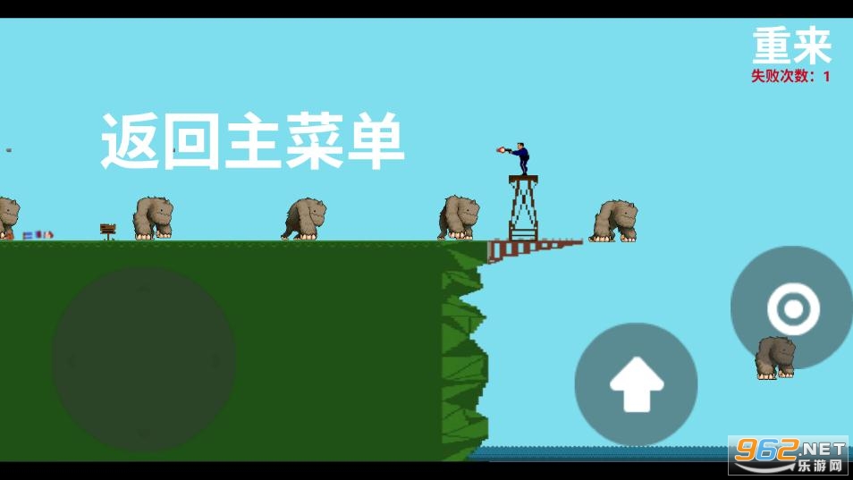 每一关,玩家都被要求从桥上跳下来,但在任何其他意义上死亡,都是失败。