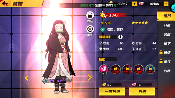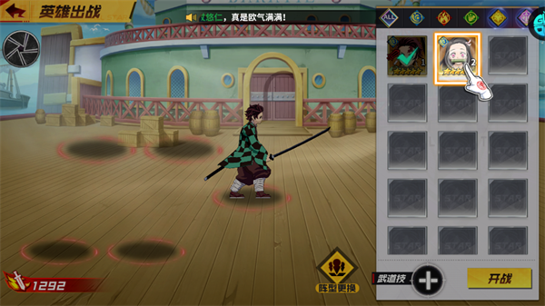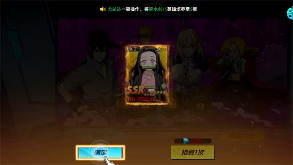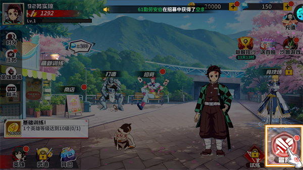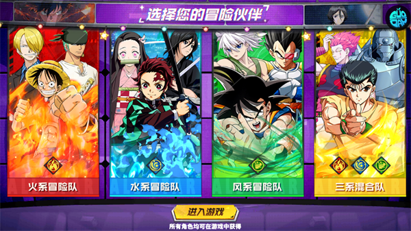 进入游戏时,首先选择一位初始冒险伙伴(如鬼灭之刃角色),这将决定你初期体验的剧情分支,但所有角色后续均可通过游戏内途径获取。选定后,建议立即进行一次免费招募,获取强力队友扩充阵容。