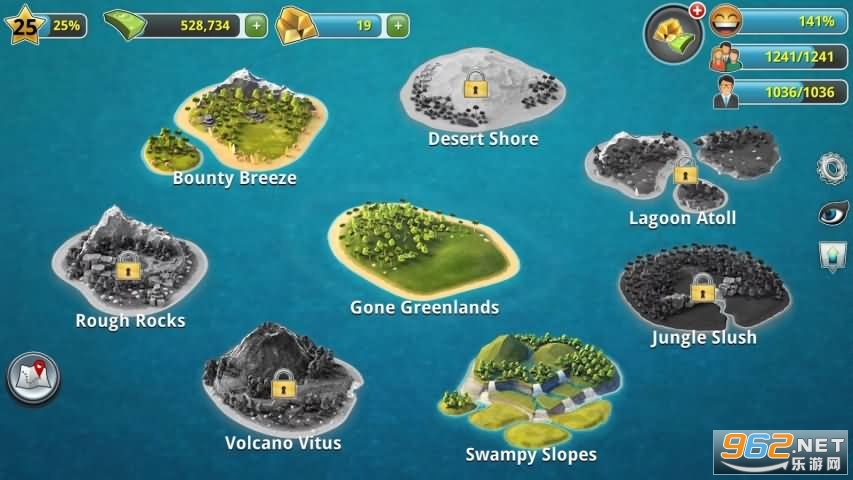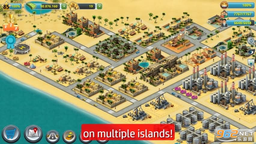 可以在旅游天堂岛屿、火山岛、沼泽地、沙漠和更多地方解锁并建造城市