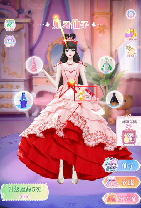 提升点击等级”不仅能显著增加每次点击所获得的魔晶数量,还能在达成特定升级次数后解锁全新服装奖励,让你的装扮选择更加丰富。