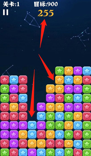 想要冲击高分?开局务必先静心观察——五种颜色的分布并非随机,而是基于棋盘结构精心设计。优先锁定最容易清除的颜色集中突破,例如红色若比黄色更集中,就应优先处理红色区域。游戏中的星星会自动向左、向下填补空缺,因此同一列中已连成片的同色星星可暂时保留,它们终将汇聚成高分组合。