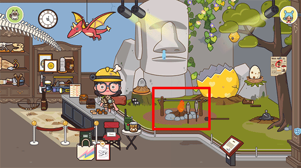 游戏中的绝大多数场景都支持互动操作。例如,你可以点击红色方框内的按钮触发事件: