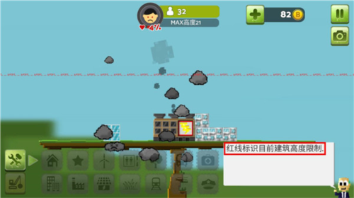 资深玩家总结出一套高效又稳定的建造策略:将重型住宅摩天楼对称布置于平衡木两侧,利用杠杆原理增强整体稳定性;内侧区域则用于布置轻量级功能建筑,即使略有偏差也不易引发崩塌。值得注意的是,工作区摩天楼的产能远高于住宅需求,通常一个即可支撑两座住宅楼,无需过度堆砌。