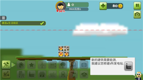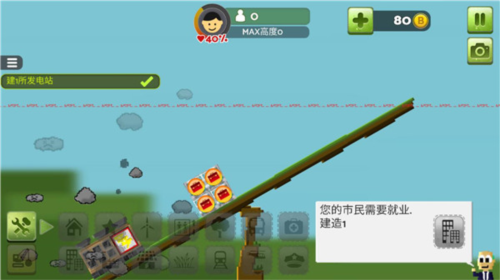 3、住宅需要电力支持,因此紧接着建设发电站——注意其重量较大,放置不当极易导致失衡失败。