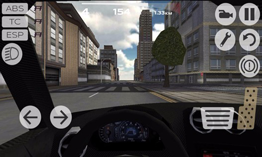 操作方式也可以自由选择,有点击式,轮盘式和手机摇动。让我意想不到的是游戏还可以昼夜切换,车灯方面做的很好。漂移的话有一个专门的漂移键。视角也可以在常见的三个视角之间来回切换。音效和音乐方面应该算是弱项,没有让人振奋的引擎发动,漂移也只有单调的摩擦声,这点你司还要加强。