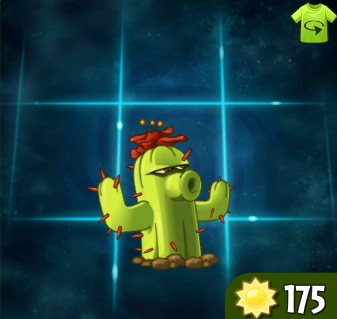 大招效果:释放能量使全身尖刺变成蓝色,其射出的尖刺伤害增加至原来的3倍,并可穿透一整行僵尸。