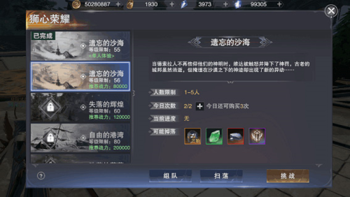 狮心荣耀(55级开启):稳定产出红色装备与强化材料,强烈建议组队挑战;