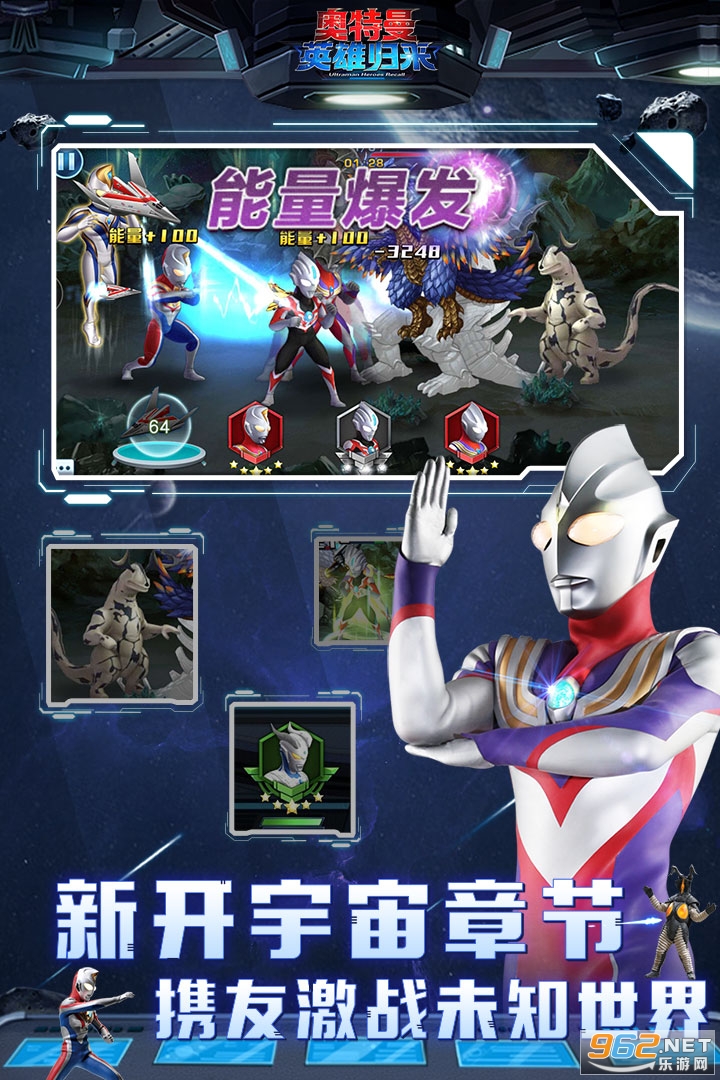 奥特曼英雄归来破解版游戏是圆谷正版授权,以《迪迦奥特曼》特摄剧为背景,人物,场景高度还原