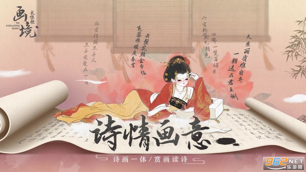 游戏的画面非常的精美,清新的古风色彩,给人一种宁静的感觉,加入长恨歌诗词的一点点的出现,为我们慢慢的展现出长恨歌的丰富意境,喜欢的朋友可以下载试试。