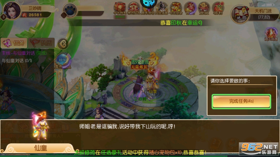 经典任务、觉醒副本、大型活动简单挂机,轻松获得升级经验,离线挂机也能升级,懒人专属仙侠福利。