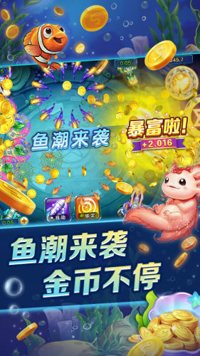 浅滩新手渔场:这是专为新手玩家打造的入门渔场,场景明亮且开阔,海水清澈见底。在这里,鱼群密度较大,且多为低分值、游动缓慢的鱼类,如成群结队的小丑鱼、色彩斑斓的热带鱼,还有偶尔穿梭其中的小螃蟹。新手玩家可以在这个渔场中尽情练习捕鱼技巧,熟悉游戏操作,逐步积累金币和信心,为挑战更高难度的渔场做好准备。