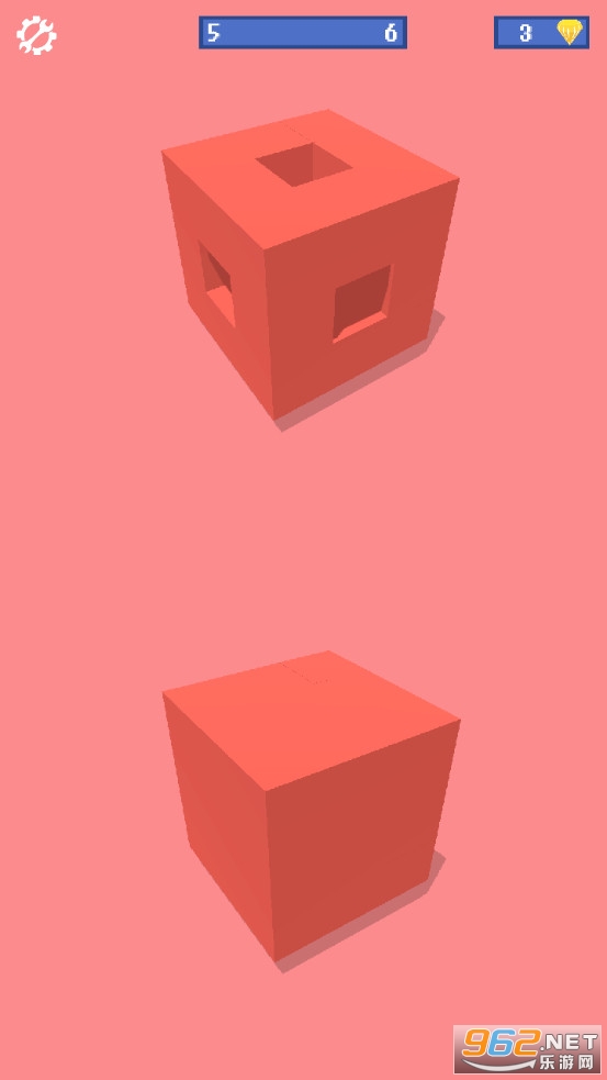 非常有意思的一款益智休闲游戏,非常考验玩家的空间想象能力,你需要想办法把下面那个完整的正方体变成上面给定的那个造型就可以了。