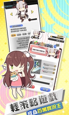 《实况主百万挑战》是一款清新卡通风格的休闲模拟游戏,游戏中玩家将成为百万粉丝的大主播,游戏采用了二次元风格,玩家将在文字模拟的玩法中实现自己的梦想,游戏的操作简单容易上手,还有着丰富有趣的玩法等待你的挑战,赶快下载体验吧!