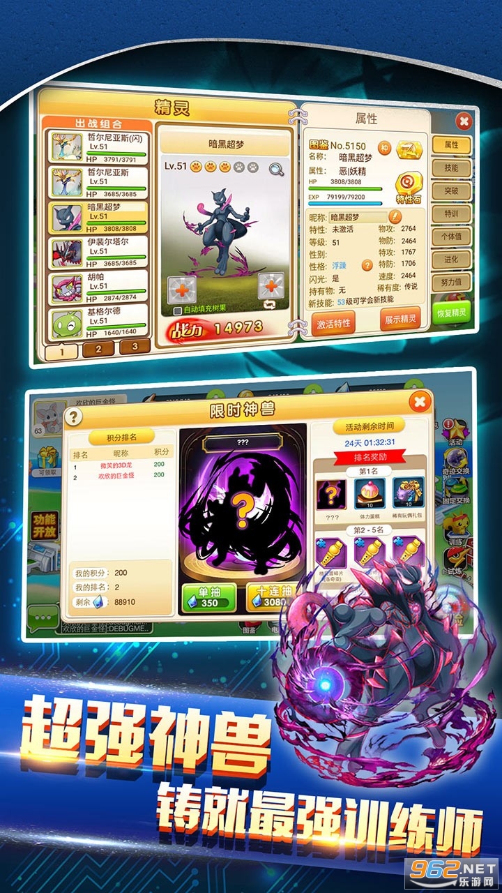 各种丰富玩法任君选择,比如闯荡传说梦境、体验训练师庄园,参加大师联赛等众多经典玩法哦!