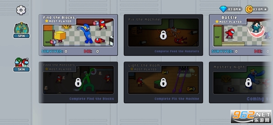 趣味的生存模拟游戏,有着多种模式可以自由选择,玩家需要控制角色灵活的移动冒险,小编带来的是彩虹朋友幸存者破解版,免广告获得奖励,有着大量的金币钻石等,轻松体验游戏。