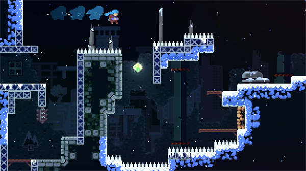 作为独立游戏节(IGF)卓越音效奖”入围作品,《蔚蓝》的配乐堪称灵魂所在。超过2小时的原创音乐融合现场钢琴演奏与富有律动感的合成节拍,随关卡情绪起伏变化,营造出紧张、宁静或激昂的氛围。像素画面虽简约,却通过细腻的动画与光影效果传递丰富情感,使每一次跳跃都充满张力与诗意。