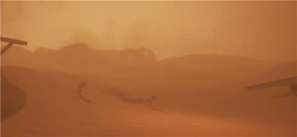 继续穿越荒凉的沙漠区域,留意环境中的可互动元素。