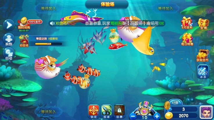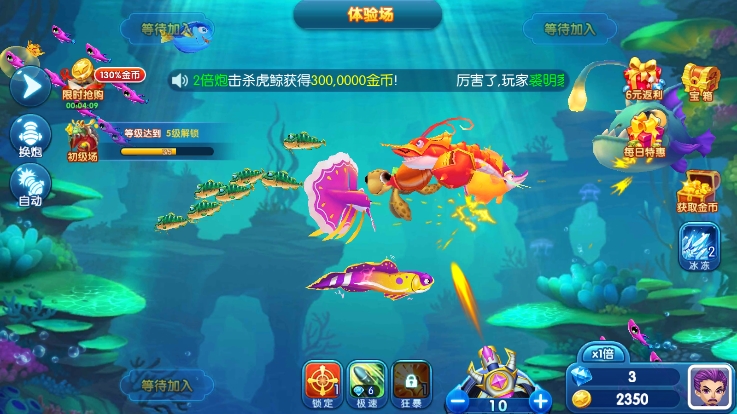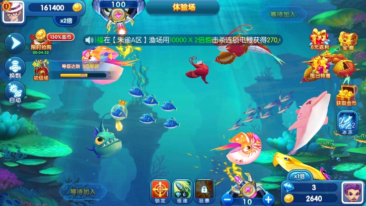合理切换1-10000炮台是关键。根据目标鱼的血量与倍率选择性价比最高的炮弹,避免资源浪费。