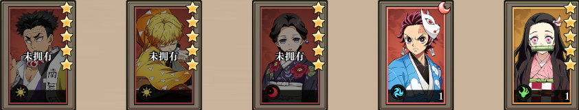 1、炭治郎+祢豆子+悲鸣屿行冥+善逸+愈史郎