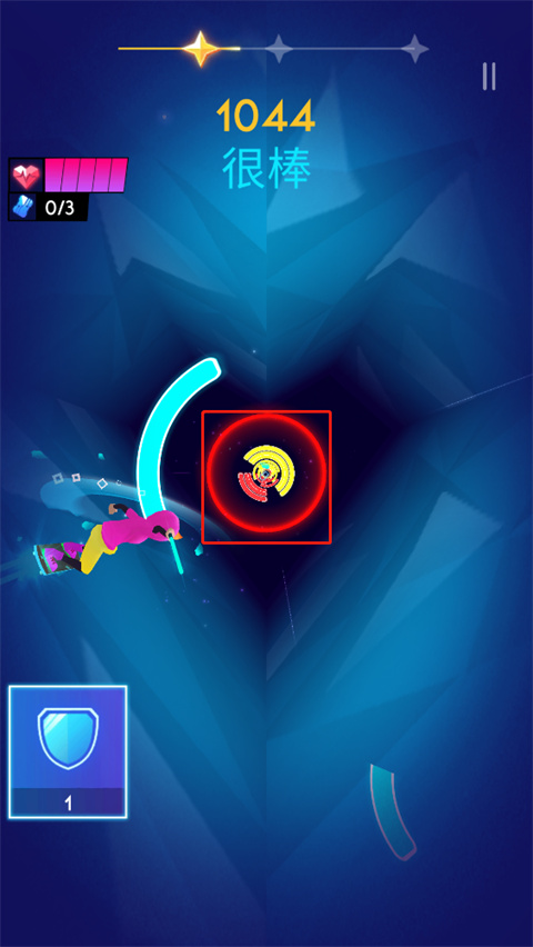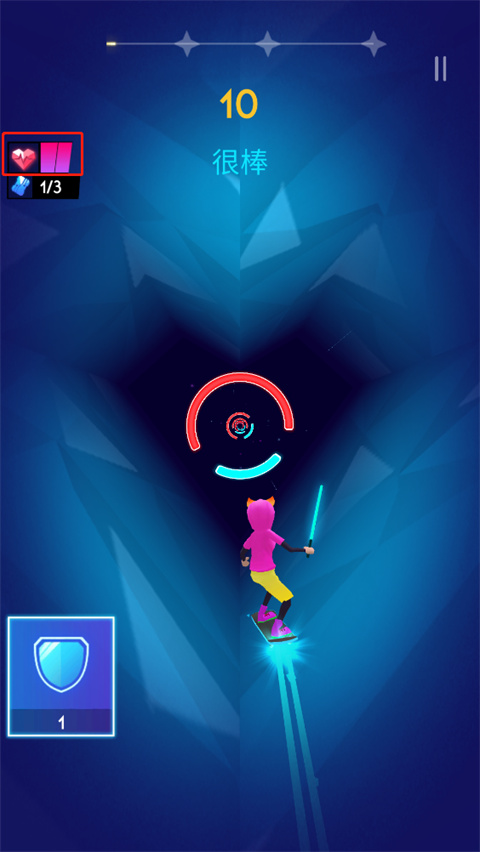 游戏设有生命值系统,左上角血条代表剩余容错次数。每次失误会消耗一格血量,血条耗尽则游戏结束,因此精准判断至关重要。