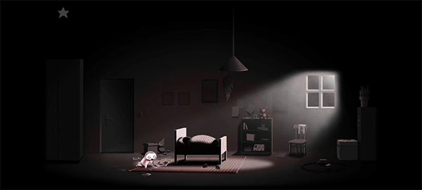 1、游戏开篇,你将扮演小男孩在房间内独自画画,随后上床入睡,正式进入噩梦世界。
