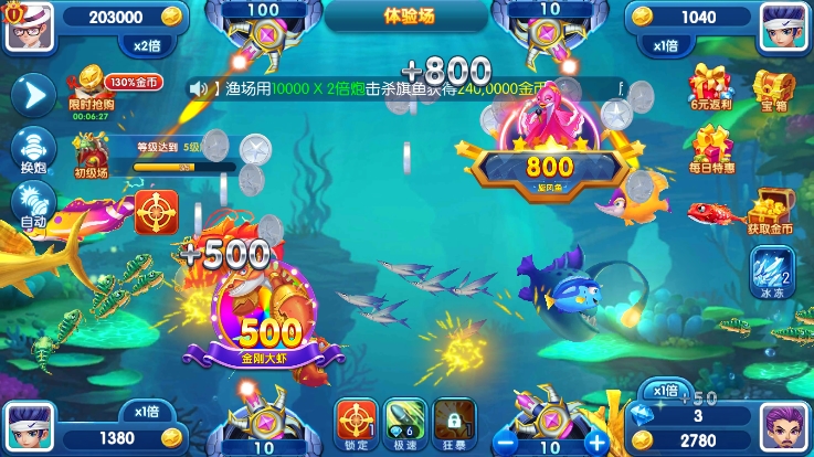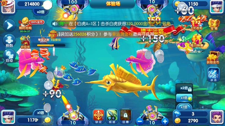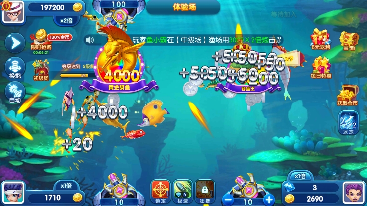 保持良好心态是制胜关键——连续失手时切勿急躁,避免无谓消耗炮弹。合理运用炮台等级:面对大鱼或密集鱼群,果断使用高等级炮弹,不仅能提升命中率,还能附带溅射伤害,一举多得。新手建议避开抢鱼激烈区域,优先选择人少鱼密的角落,稳步积累资源后再挑战高倍BOSS。
