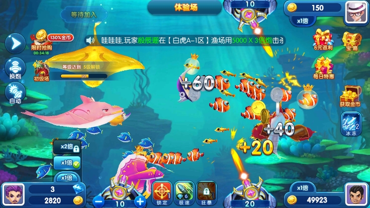 合理匹配炮台与目标是高效收益的关键:高分鱼配高倍炮,低分鱼用低倍炮,最大化金币投入产出比。遇到久攻不下的目标应及时止损,转而捕捉其他高性价比鱼类。保持全局视野,关注已被削弱的残血鱼,往往能以低成本收获高回报。同时,善用炮弹反弹特性规避障碍,结合道具增强火力,在关键时刻扭转局势。积极参与捕鱼大赛,不仅能赢取丰厚奖励,还能观摩高手操作,快速提升自身战术水平。
