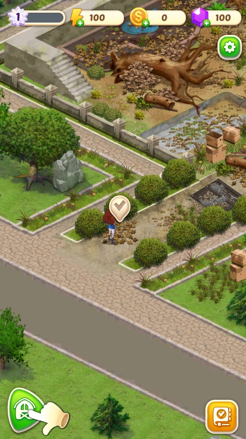 进入游戏后,你将跟随简短剧情开启修复之旅。首先在花园中清理杂物,熟悉基础操作。初期资源有限,需点击左下角进入合并”界面,通过合成低级物品逐步获取更高级工具。