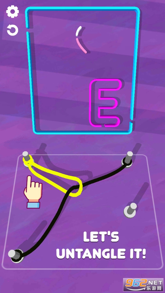 霓虹灯色彩的一款休闲游戏,玩起来还挺有意思的,玩家需要把打结的线段分开就可以了,它们会自己拼成新的图案,是适合各个年龄向玩家的解压神器哦!