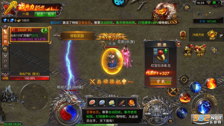 丰富的养成系统,自由的成长模式,锻神兵、乘灵驹、插宝翅、让你打造血雨腥风中最耀眼的将星;独特的拍卖行体系和解绑功能,让装备无限保值,打怪PK稳赚不赔。玛法秘境、天空之狱、失落之城,禁地魔兽等你征服,寻觅玛法珍宝征服世界。