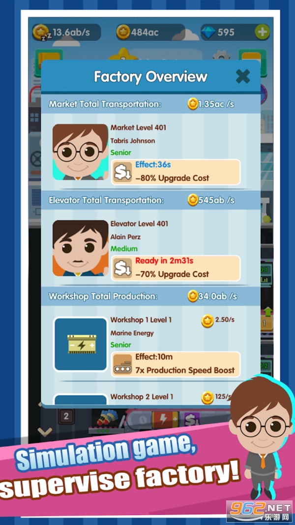 1、休闲益智的挂机玩法,解锁更多的工厂来为魔都人民提供生活物资;