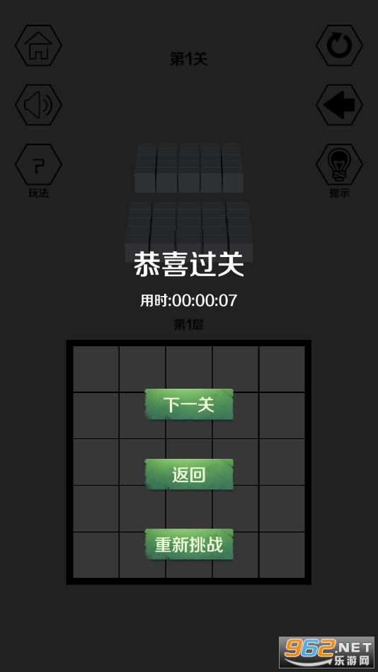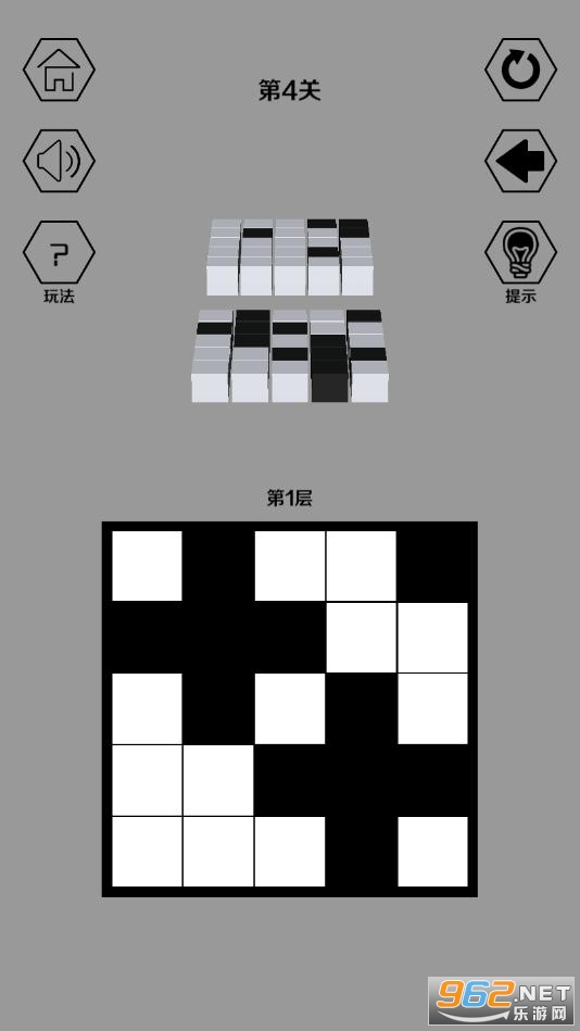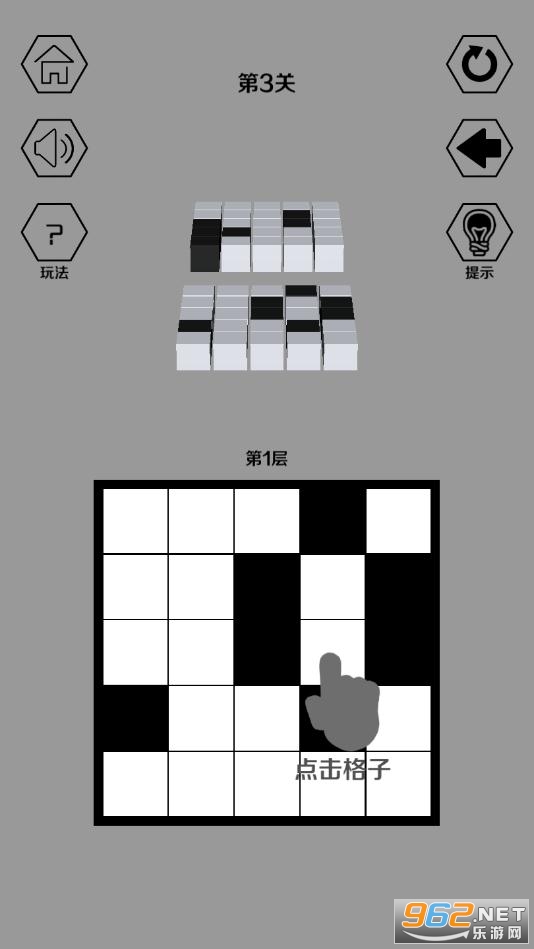 另外,在3维环境下对应的上下层格子也将反色,在此玩法基础上玩家消除所有黑色格子即为游戏胜利。