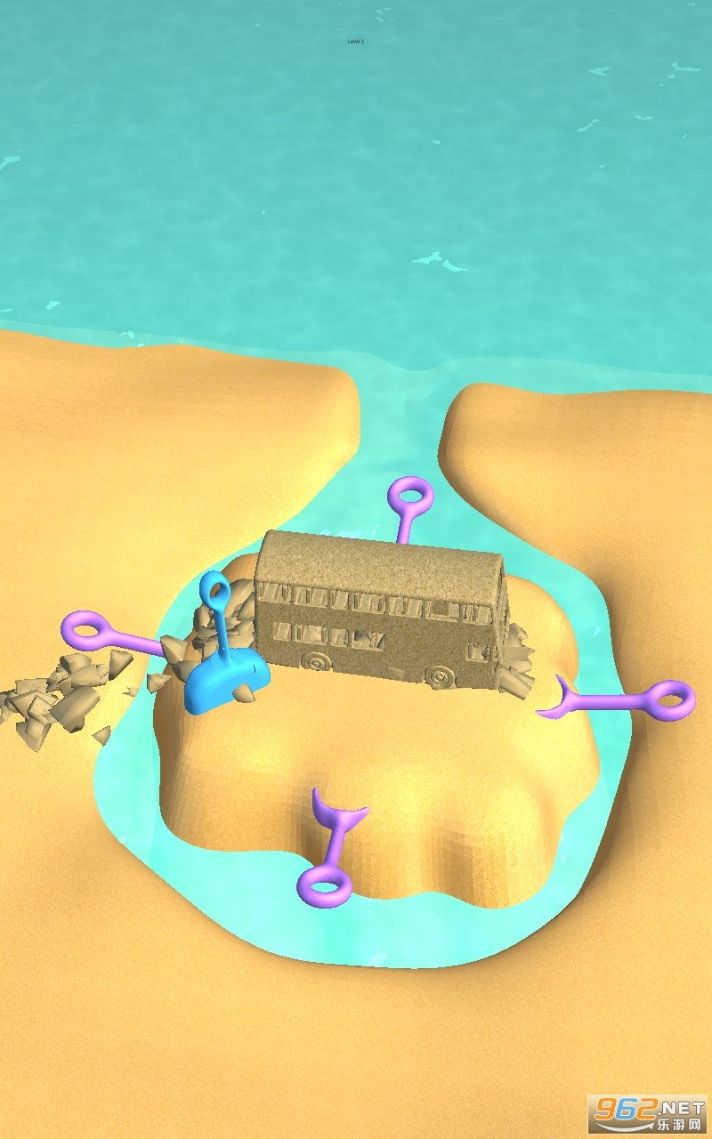 2、游戏取景在沙滩上,使用各种工具、交通工具去完成你的建造房屋任务;