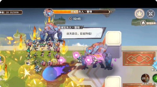 点击召唤”即可部署伙伴,例如可远程冲锋的守护骑士,为前线提供关键支援。召唤后还能继续强化该单位,提升其数量与属性,打造专属战斗核心。