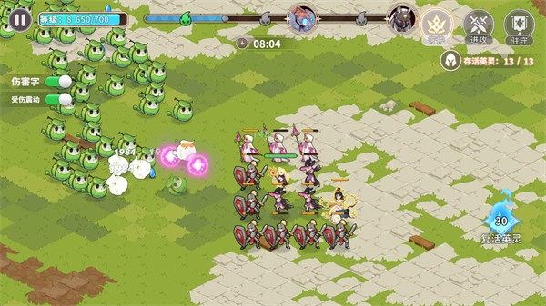 进入游戏后,你将选择初始角色踏上征途。通过招兵买马、招募英灵,逐步组建属于自己的战斗军团。每一局都是全新挑战,你需要根据战场局势灵活调整阵容,合理搭配不同兵种与英雄技能,才能在汹涌敌潮中站稳脚跟。