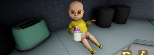 初次进入游戏,左手控制角色移动,右手进行互动操作(如抱起、放下、喂食等)。起初,宝宝表现正常,会哭、会笑、按时睡觉,但随着时间推移,其行为将变得越来越诡异。注意:地图中的多数房间需通过收集线索或完成特定任务才能开启,务必保持警惕,仔细观察环境细节。