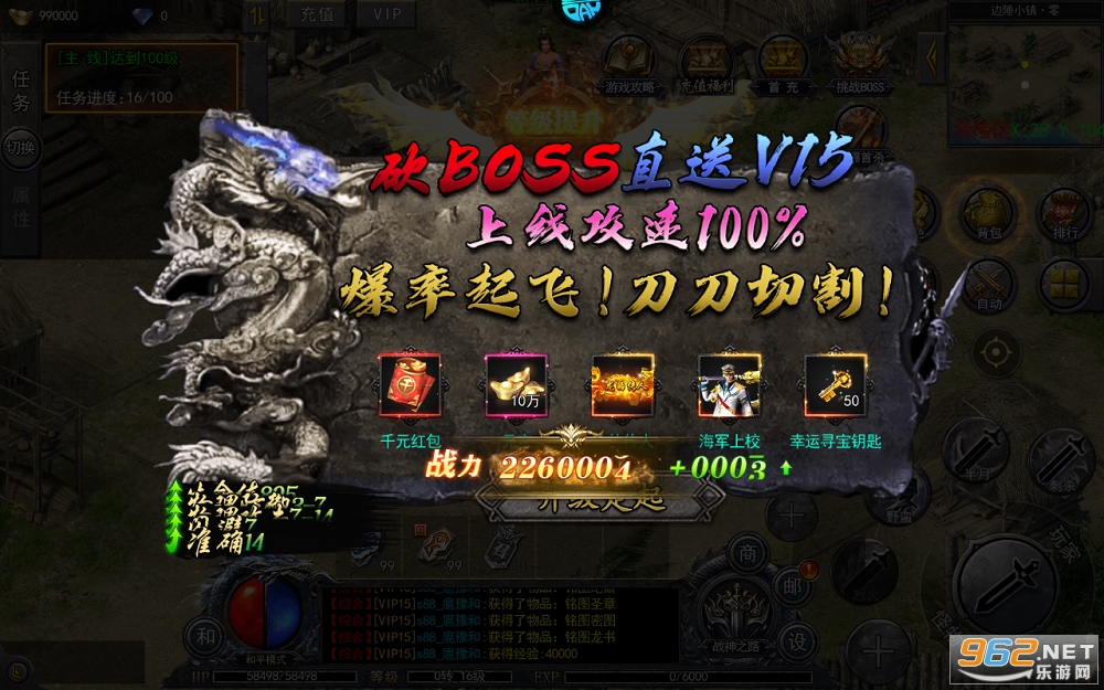 游戏内设独特BOSS系统,和兄弟一起打BOSS,体验超高爆率、疯狂收割的快感,让你不再为装备和资源发愁!