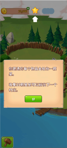 进入游戏后,你将从第一个村庄开始经营。首先建造基础房屋,每完成一个建筑都会获得星星,集满20颗即可解锁下一村庄。