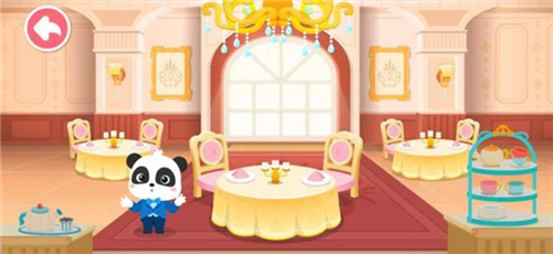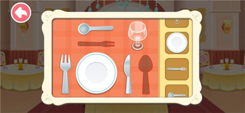 2. 游戏采用分区设计,清晰引导宝宝逐步完成迎宾、烹饪、摆盘、上餐等环节;