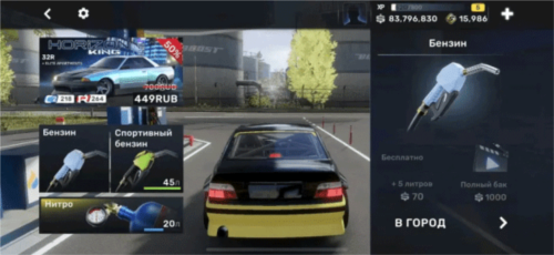 游戏界面简洁直观,各项功能分区明确。在【设置】中,绿色代表开启,红色代表关闭,操作逻辑清晰。音效方面目前仅支持默认电台,但氛围感十足。加油系统分为普通蓝油与高级绿油,每次加油量固定为45升,建议优先选择70金币选项,避免1000金币加满”陷阱。氮气可通过漂移或直线加速积累,合理使用可大幅提升圈速。