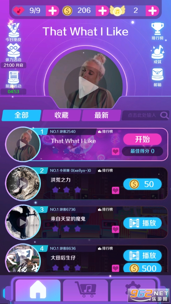 1、众多不同的音乐,都是需要在关卡当中获取到最高的评分之后才能进行解锁的;