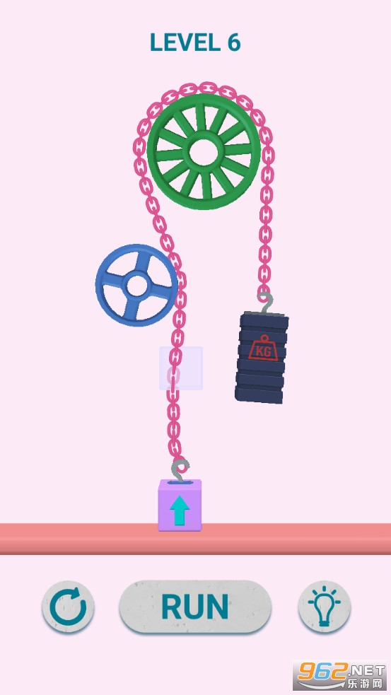 还挺有意思的,玩家在游戏中需要利用好这些滚轮,画出铁链,让重物能够把带了箭头的小方块带到透明方块区域就可以了!