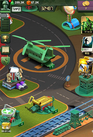游戏提供四大核心兵种体系——突击营、坦克工厂、直升机工厂与火炮工厂,涵盖数十种经典玩具兵单位。每个兵种拥有独特技能与攻击方式,并存在明确的克制关系:突击兵压制直升机与火炮,坦克碾压步兵却惧怕空中打击,火炮可摧毁防御工事但易被多兵种围剿。合理搭配兵种与英雄,以智取胜,方能以弱胜强。