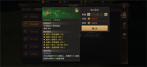 声望攻略:加入战盟后参与协助请求与定时活动,每日打满声望。优先兑换黑暗狼魂(回血)、神鹿之泪(5秒无敌)、三转项链(全能属性)三大核心道具。