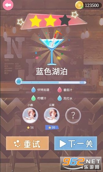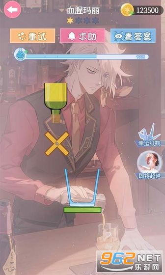 是一款轻松有趣的益智闯关游戏,游戏中有着非常丰富的关卡等待你的挑战,通过划线来调配出各种各样不同种类的酒,游戏的玩法轻松有趣,还有着超帅气的调酒师等待你的解锁,游戏的操作简单容易上手,推荐给喜欢休闲游戏的玩家。
