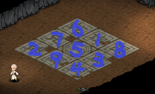 八卦阵正确走法:坎 → 坤 → 震 → 巽 → 阴阳鱼 → 乾 → 兑 → 艮 → 离(走错可在(18,21)拉动铁杆重置)。